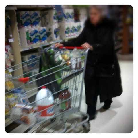 Le supermarché ouvrait à 13h. Il était 13h15. Les allées étaient déjà bondées.
