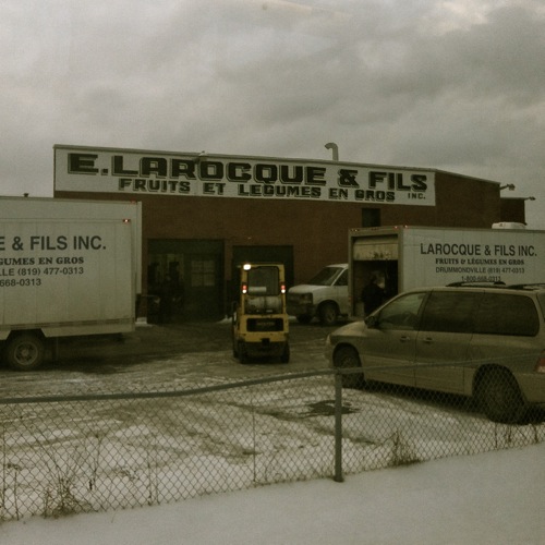 Drummondville. En train. Tôt le matin. Direction Montréal. À droite, la gare. À gauche, l’entrepôt de fruits et légumes. Je le vois presque toutes les semaines. Un peu après 7h. Ou alors le soir, vers 19h, au retour, selon le siège qui m’a été assigné.