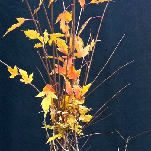 L’automne, c’est les montagnes cuivrées, les forêts aux feuilles virevoltantes et les rues de Limoilou bordées de congères de feuilles jaunes (la 9e rue était particulièrement magnifique cet après-midi). C’est aussi ces humbles branches colorées qui nous surprennent au moment où on s’y attend le moins.