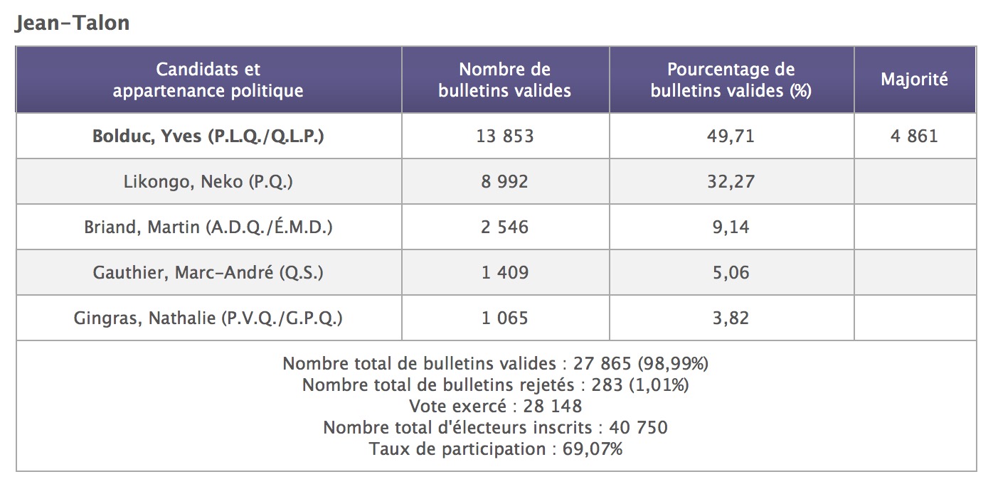 Par conséquent, s’il est possible d’émettre l’opinion que je ne pars pas pas favori, il n’est absolument pas possible de dire que Jean-Talon est réfractaire au Parti Québécois.