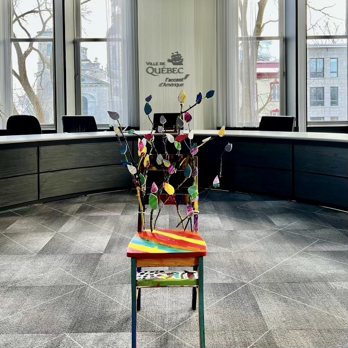 La fabrication de cette chaise par les enfants de l’école Sacré-Coeur a rendu la chose concrète, belle, inspirante. La présence des générations à venir dans nos délibérations est devenue beaucoup plus concrète.