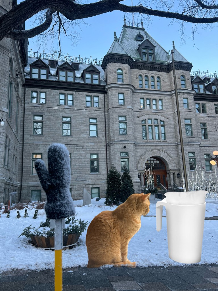 En arrivant à l’Hôtel de Ville ce matin, j’ai vu une mitaine (perdue par un enfant?) qui avait été placée sur une tige de signalisation.
