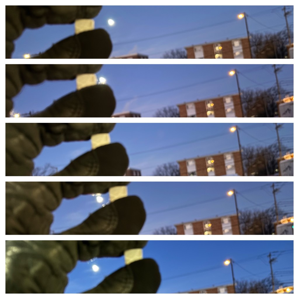Je me suis offert l’incroyable spectacle d’une pleine lune éclipsée par un petit cube blanc. Je m’empresse de vous partager ça, parce que c’est un phénomène très très rare.