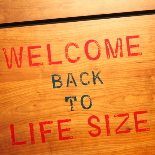 L’affiche est usée par le temps. Elle nous accueille à l’entrée du moulin à laine devenu attraction touristique. C’était une superbe journée de juillet.