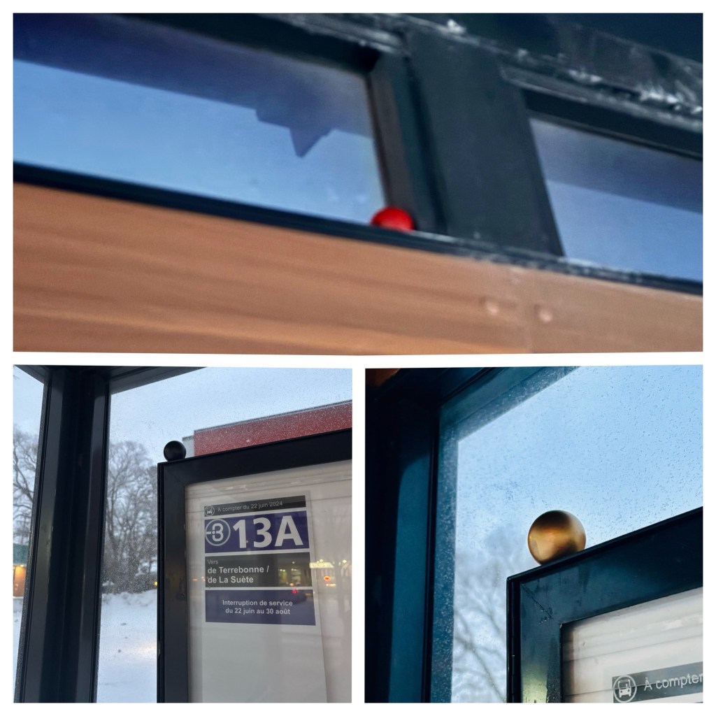 Devant le regard étonné de la dame qui attendait l’autobus avec moi, je suis monté sur le banc dans l’abribus, et j’ai laissé la boule rouge sur une poutre, bien visible, en hauteur.