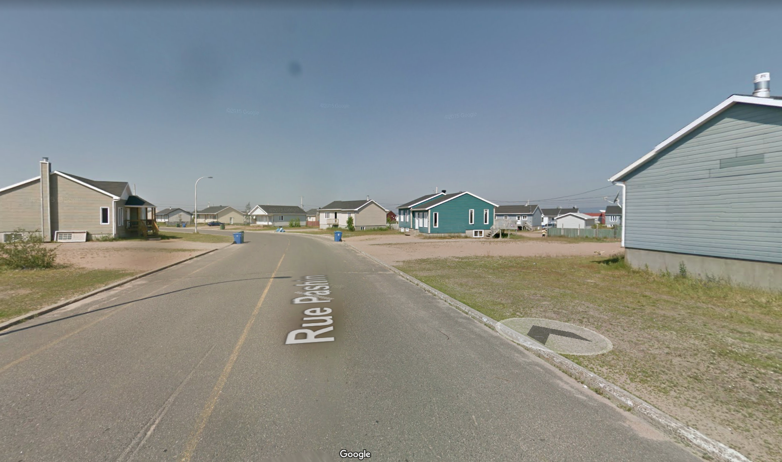 J’ai tapé Uashat dans Google, j’ai cliqué sur Maps, et je suis passé en mode Street View.