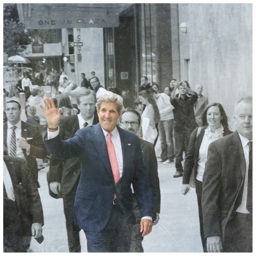 Eh ben, me suis-je dit… Nous sortons des Nations Unies, nous attendons John Kerry pour ajouter un visage à l’apprentissage de la diplomatie auquel nous avons consacré l’après-midi avec les enfants…